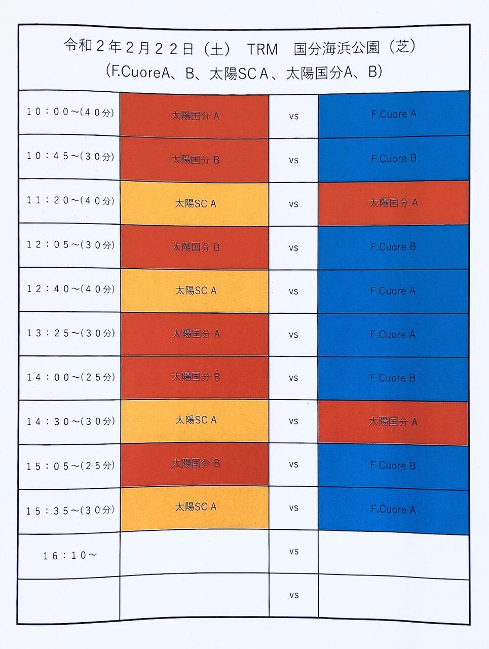 試合をして下さいました、ソレッソ熊本・小倉南FCの関係者の皆様、大変お世話になりました。有難うございました m(_ _)m